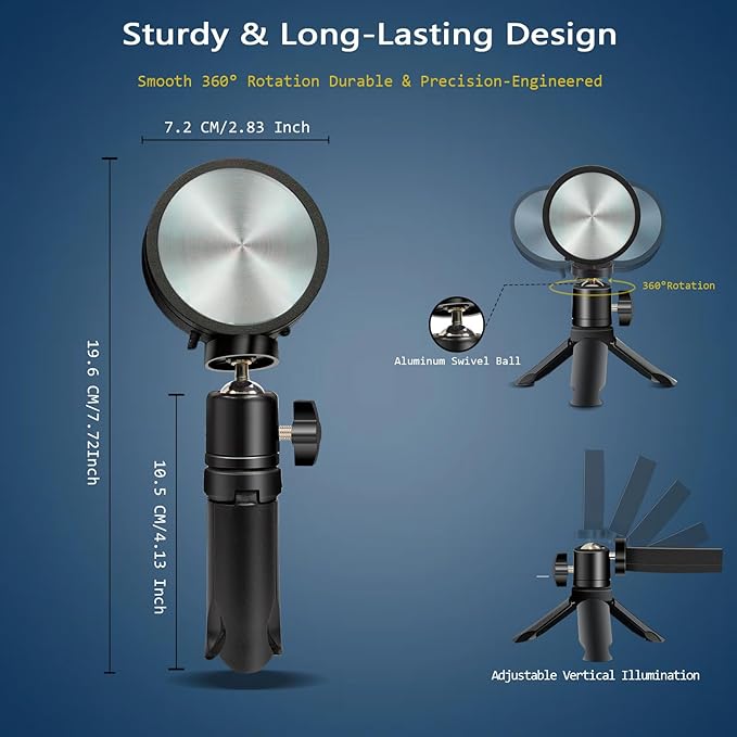 - Sturdy 360° Metal Stand:Solid metal frame (no bendable plastic!) with smooth 360° rotation. Lock the angle for precise lighting—no drooping or shaking!Our sun lamp features a rigid aluminum alloy stand (not bendable plastic!) that rotates 360° smoothly and locks at any angle. The patented clip-on shade lets you direct light vertically or horizontally—ideal for ceiling projection, wall art, or photography fill light. No more drooping arms or shaky beams!