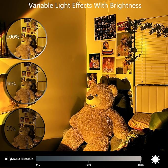 - Durable & Safe Design:Metal body & heat-resistant shade—safer and longer-lasting than flimsy plastic lamps. No clutter, no overheating, just pure ambiance.While others use flimsy bendable stands, our sunset light has a solid metal frame that stays put after 1000+ rotations. The heat-resistant lampshade prevents overheating, and hidden cable routing keeps your space clutter-free.