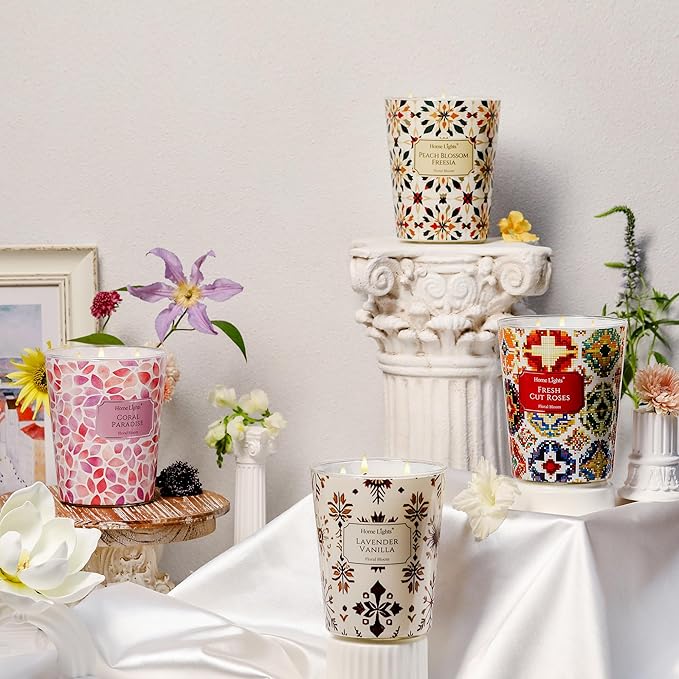 HomeLights Coral Paradise Scented Candles | 34oz Soy Candles Bohemian Natural Textures 3-Wick Large Candle Jars | Ideal Candle Gifts for Events, Home Decor Stress, Relief & Relaxation