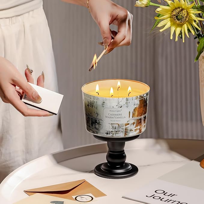 HomeLights Scented Candles for Women & Men, 18oz Candle Jars Aromatherapy 4-Wick Candle, Ideal for Industrial Chic Home Decor and Gifts, Cashmere Warm Vanilla
