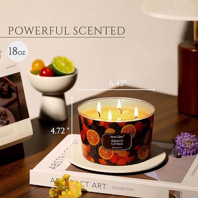 HomeLights 4-Wick Candles for Home Scented - 18oz Soy Wax Blend Candle Long-Lasting Fragrance, Eclectic Mixed Styles Home Decor and Housewarming Gifts, Amalfi Citrus