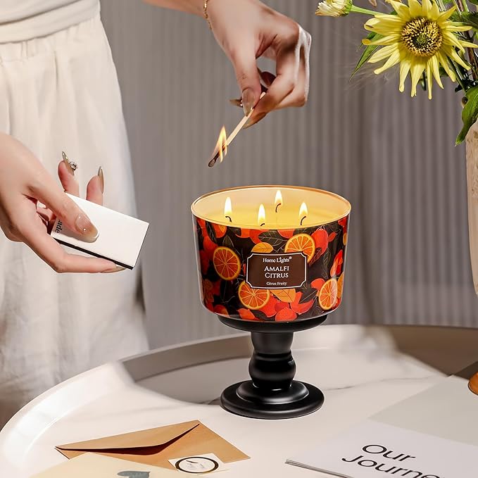 - 【4-Wick Citrus Fruity Scented Candle】A vibrant blend of zesty citrus and sweet fruity notes creates an energizing yet comforting aroma. Four lead-free cotton wicks ensure a powerful fragrance throw, filling any room with freshness.