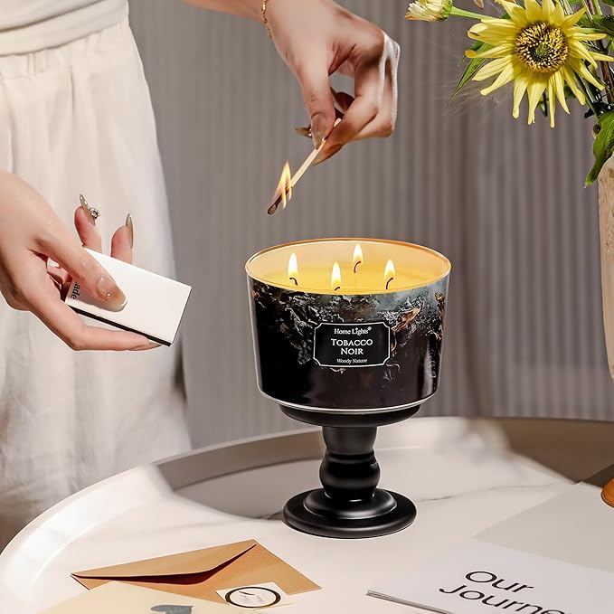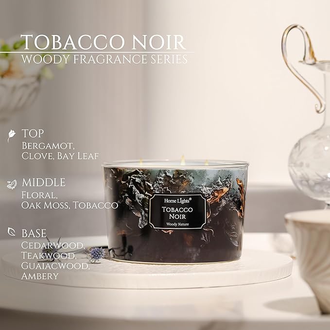 HomeLights Scented Candles for Women & Men, 18oz Candle Jars Aromatherapy 4-Wick Candle, Ideal for Industrial Chic Home Decor and Gifts, Tobacco Noir Fragrance