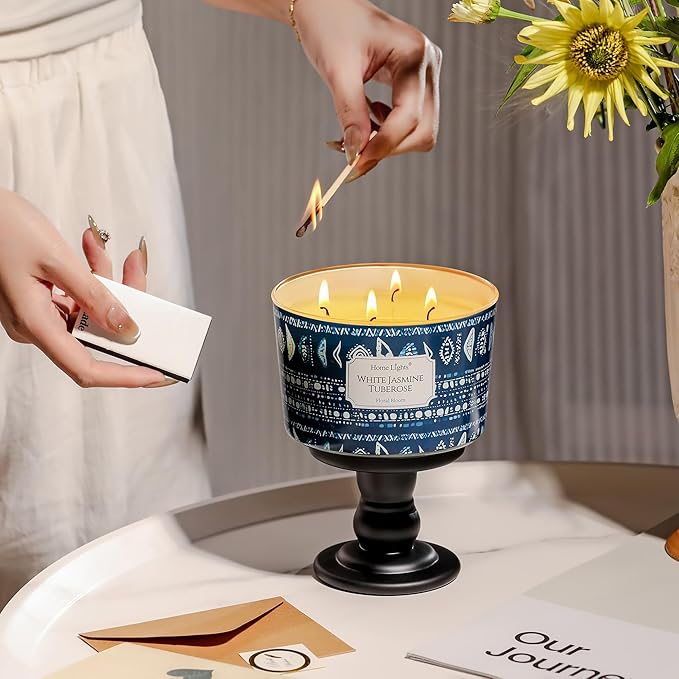 - 【4-Wick Premium Candle】Four lead-free, self-trimming cotton wicks ensure an ultra-even burn and intense fragrance dispersion, specially designed to fill expansive spaces with rich, consistent aroma.