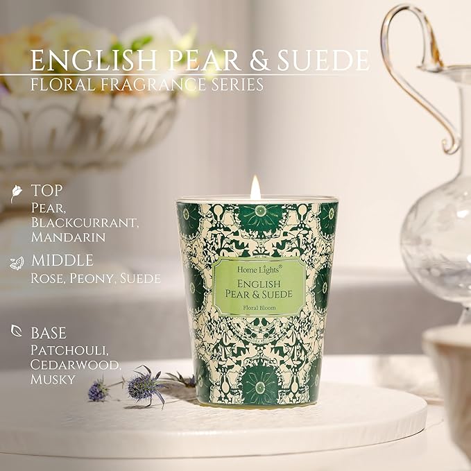 - 【English Pear & Suede Fragrance for Relaxation】1-Wick Candles capture the essence of English Pear & Suede with its fresh, juicy top notes of ripe pear, a heart of soft suede, and a warm, woody base of amber and patchouli. Perfect for cultivating a serene ambiance in living rooms, bedrooms, or bathrooms.