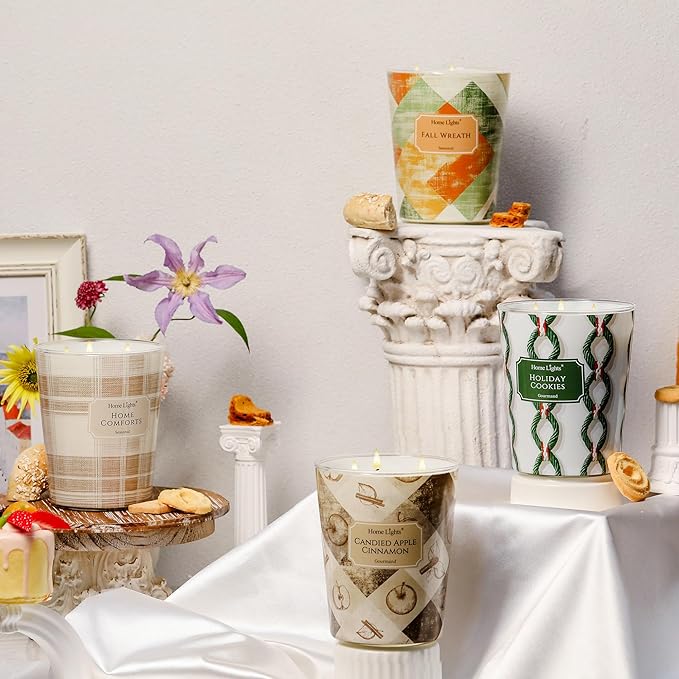 HomeLights 3-Wick Candles for Home Scented - 34oz Soy Wax Blend Candle Long-Lasting Fragrance, Rustic Modern Home Decor and Housewarming Gifts, Candied Apple Cinnamon