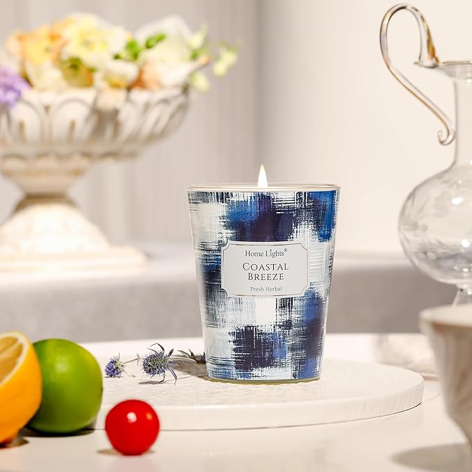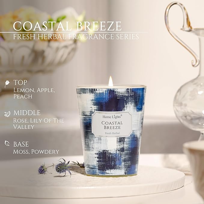 HomeLights Large jar Candle | 1-Wick Long-Lasting Scented Candles, 6.7oz Natural Soy Wax Candle for Home Scented, Scandinavian Minimalist Design Gifts for Women & Men, Coastal Breeze