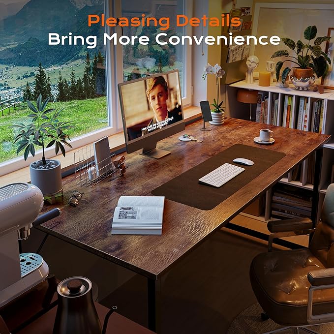 - 【Deeper Desktop for Daily Needs】Measuring 54''x23.6'', this deeper desktop of the laptop desk fits your laptop, lamp, planner, and even a second monitor, ideal for working from home, attending online classes, or organizing your study zone without clutter