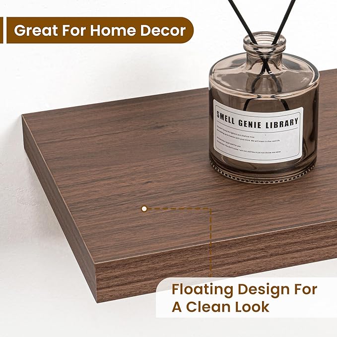 - Rustic Wooden Floating Shelves: Crafted from sturdy MDF and strong iron brackets, these rustic floating shelves (23.6" W x 9.3" D ) hold up to 30 lbs. Perfect for displaying books, photo frames, trophies, and décor with confidence