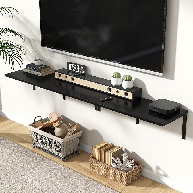 - 【Strong & Durable Construction for Long-Lasting Use】Constructed from high-quality, smooth-finished MDF, these wall shelves provide a sturdy and attractive foundation that resists warping and scratching over time. The robust black L-shaped metal brackets are designed from industrial-grade steel, ensuring excellent support and stability. Each shelf can bear up to 50 lbs when properly installed, allowing you to confidently store heavier items like books, cookware, or collectibles without worry.