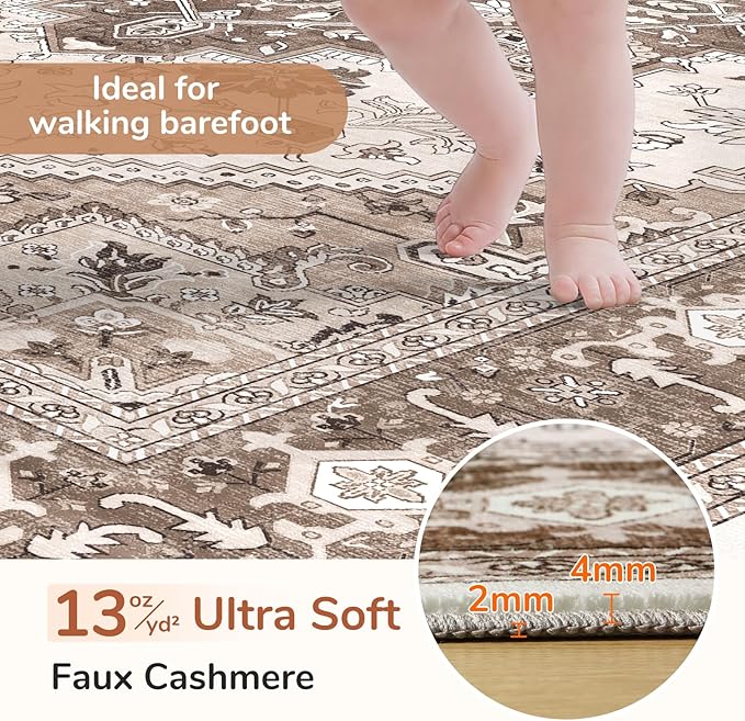 OPPODREAM Thin Area Rugs 9x12 Living Room, Washable Rugs 9x12 with Non Slip Backing, Faux Cashmere Low-Pile 9 x 12 Carpet, Khaki