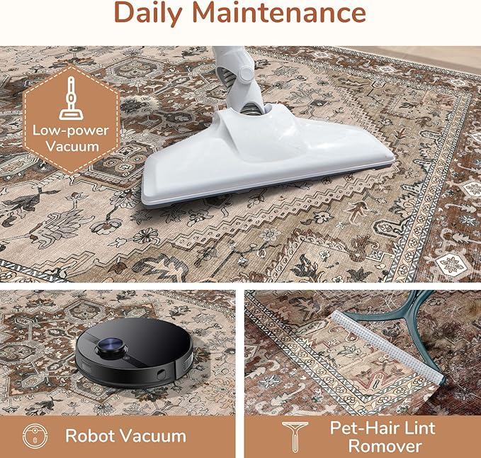 OPPODREAM Thin 8x10 Area Rugs, Washable Rugs 8x10 with Non Slip Backing, Faux Cashmere Low-Pile 8 x 10 Carpet, Brown
