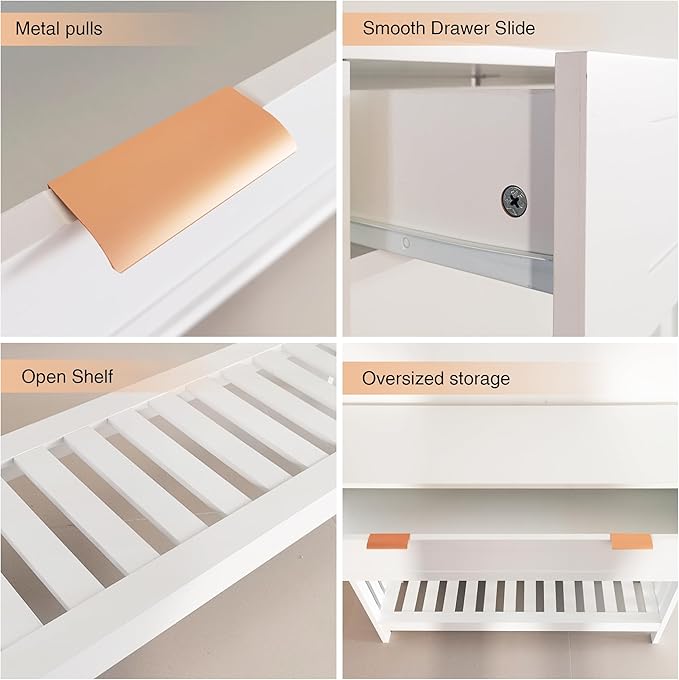 - Durable & Sturdy: This entryway table with storage is made of high-quality engineered wood—sturdy, scratch-resistant, resists daily wear, perfect for busy homes. Fine-plated gold handles stay shiny over time. Drawers have silent, smooth slides—no harsh noises when grabbing keys or mail. Polished edges feel smooth; surface wipes clean easily, staying fresh as unboxed. More than furniture, craftsmanship meets daily needs, quietly supporting quality living.
