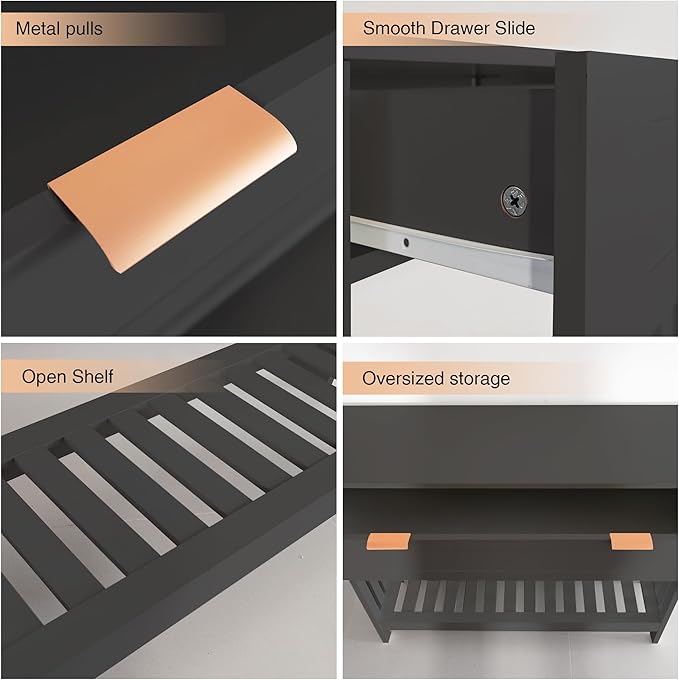 - Safe & Durable Entrance Table: Crafted from high-quality engineered wood, this table is sturdy, scratch-resistant, handling daily wear easily. Finely finished metal handles retain shine long-term. Silent, smooth drawer slides ensure no harsh noises accessing items, keeping home quiet. It features an anti-tipping device, securely wall-fixed to prevent accidents from children climbing/bumping, eliminating risks and quietly safeguarding peace of mind.