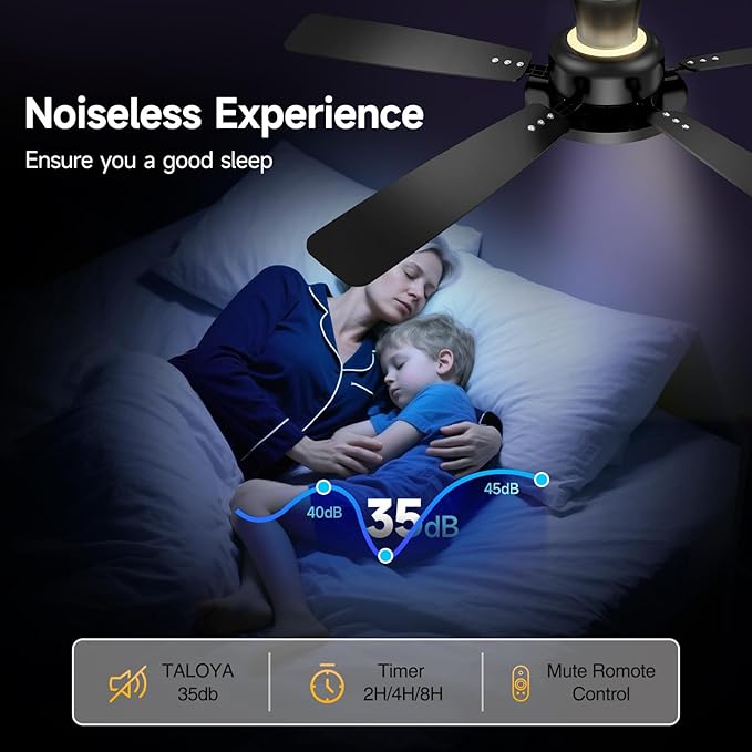 - Whisper-Quiet Experience: This modern ceiling fan with light is perfect for light sleepers, creating a peaceful environment for a restful night. Operating at just 35dB, it's as quiet as falling leaves or the soft flutter of a butterfly's wings. It's ideal for families with babies or elderly members.