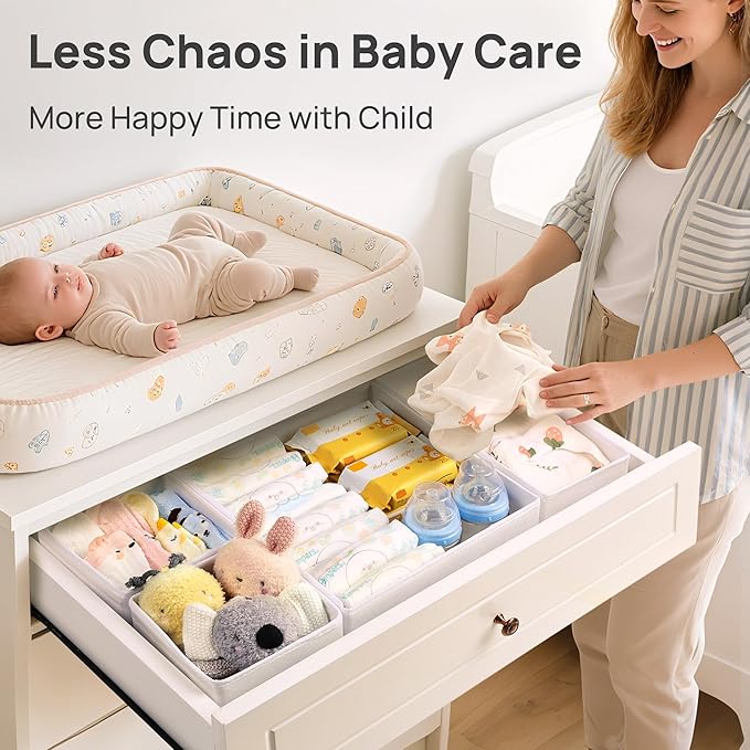 Vtopmart 12 Pack Baby Clothes Organizer, Dresser Drawer Organizer for Baby Clothing, Foldable Fabric Closet Drawer Storage Bins, Nursery Dresser Dividers for Bra, Socks, Ties, Scarf