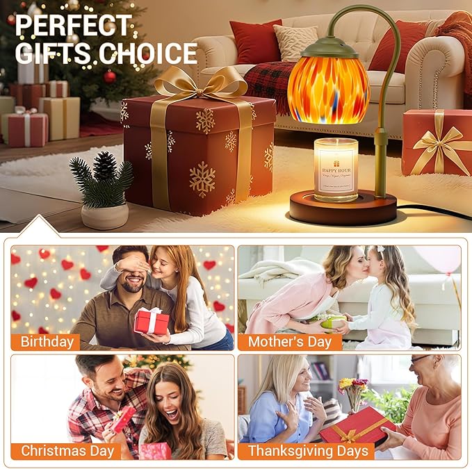 - Perfect Home Deco & Gifts: Our modern wax Harvest-themed warmer lamp is a stylish combination of wooden base and the unique blown art glass, make this a perfect art deco piece to enhance the beauty of your home. This electric candle warmer features exquisite iridescent glass, making it the perfect gift for any occasion, Ideal gift choice for your family, loved ones and friends on Mother's Day, Father's Day, Thanksgiving, Christmas, Housewarming, Birthday Day, Anniversary Day, Valentine's Day.