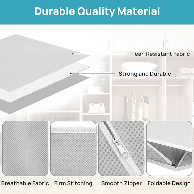 - 【Durable Construction】Made of breathable non-woven fabric with excellent stitching to make them last. Strong plastic boards are added at the 4 sides which are breathable and odorless to make these organizer bins sturdy enough, and they can be easily cleaned with a damp cloth.