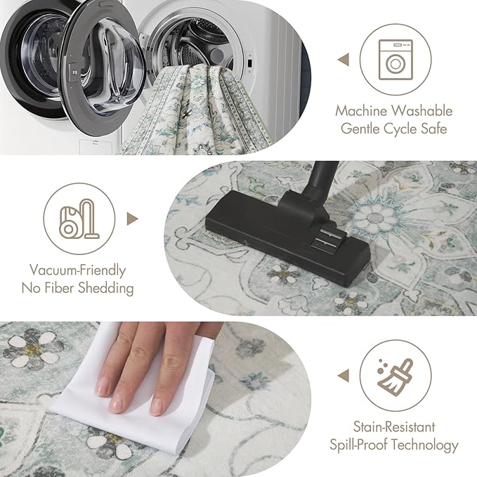 - Hassle-Free Washable Convenience: Enjoy effortless cleaning with our fully machine washable rug, designed for busy lifestyles. Simply toss it in your washer with cold water for a quick refresh, saving you time on spills and daily upkeep. Perfect for homes with kids or pets, this washable rug helps keep your space pristine without fading or shedding.