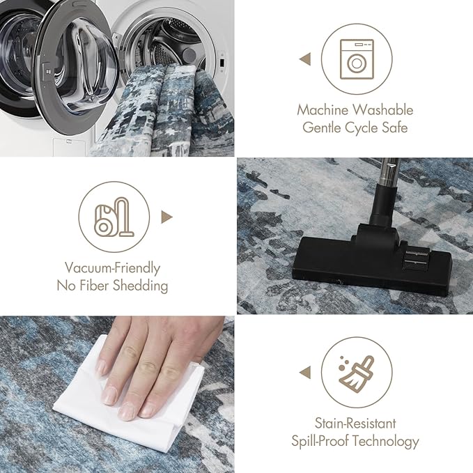 - Hassle-Free Washable Convenience: Enjoy effortless cleaning with our fully machine washable rug, designed for busy lifestyles. Simply toss it in your washer with cold water for a quick refresh, saving you time on spills and daily upkeep. Perfect for homes with kids or pets, this washable rug helps keep your space pristine without fading or shedding.