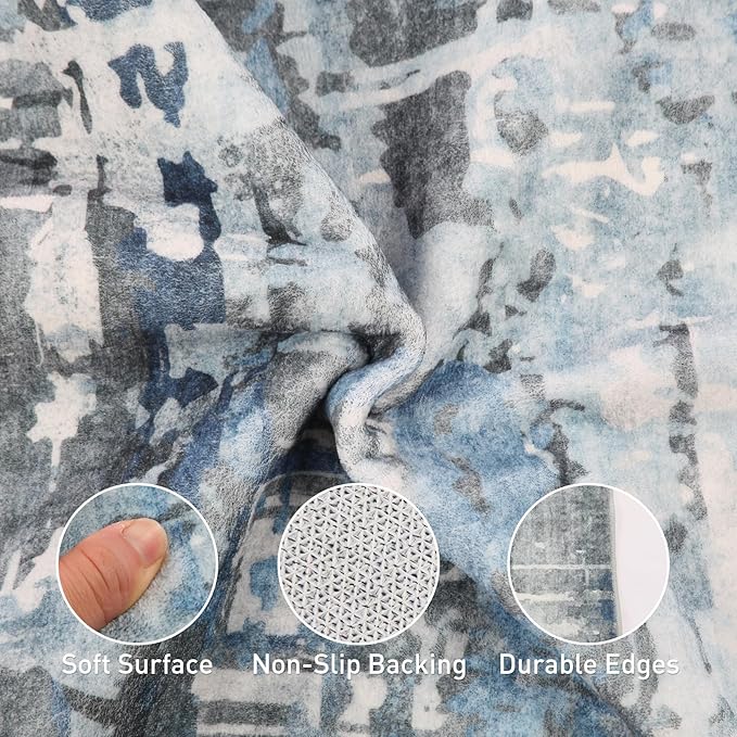 3x5 Soft Washable Area Rugs for Living Room and Bedroom, Non-Slip Stain Resistant Indoor Carpet, Cozy Floor Mat for Dining Room, Office,Stain Resistant Entryway Blue