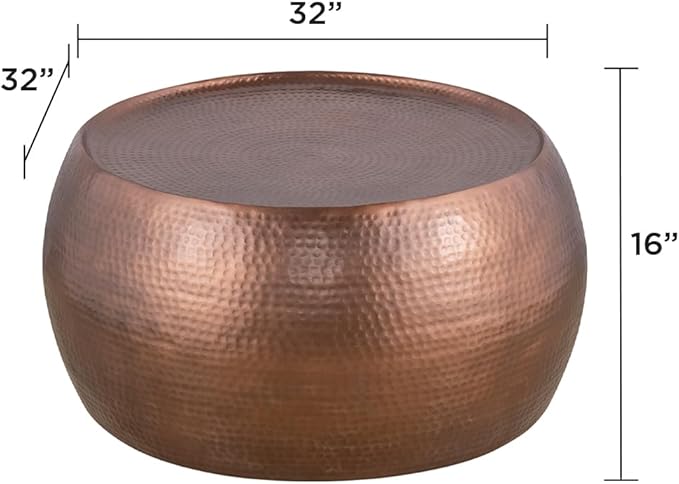 CT501 Modern Contemporary Round Aluminum Material 32" Coffee Table, Farmhouse Table with Glossy Hand Hammered Design Antique Copper
