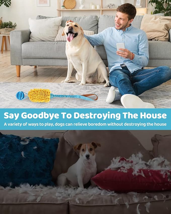 - Durable Chew-Resistant Design: Constructed with non-toxic TPR and reinforced elastic webbing, this interactive toy withstands aggressive chewing while protecting furniture from damage. The climbing-grade webbing handle ensures long-lasting durability for both small and large breeds