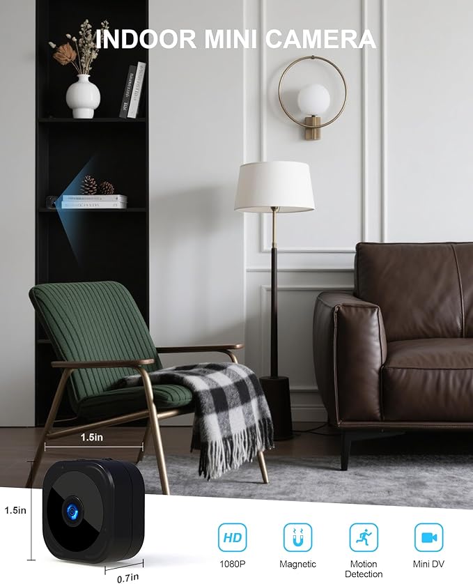 1080P HD Mini Camera for Indoor Security with App Control Motion Detection & Night Vision Wireless WiFi Rechargeable Pet Camera for Home/Office 24/7 Cycle Save (Black)