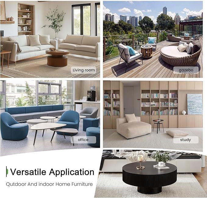 - Multifunctional Use: This round coffee table features a stylish vertical texture relief design. This wood drum coffee table fits multiple scenarios.This modern side tables accent end table can also be used as a decorative display table, or just as a simple accent piece for your living room, bedroom, office, or any places that needs extra storage.