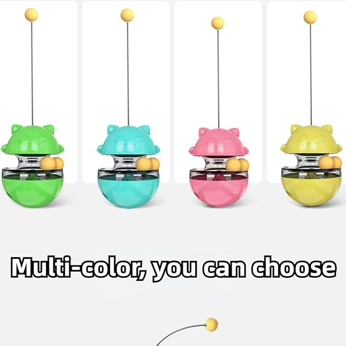 - Interesting Design - This cat toy ball has 3 small balls, a top ball and two track balls attract your pets to play. With tumbler design, these balls can interact with your pets. Transparent storage tank of the food ball makes your pet to find the inside food easily and directly.