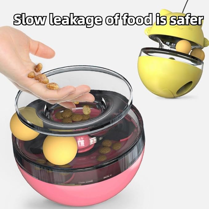- Interesting Design - This cat toy ball has 3 small balls, a top ball and two track balls attract your pets to play. With tumbler design, these balls can interact with your pets. Transparent storage tank of the food ball makes your pet to find the inside food easily and directly.