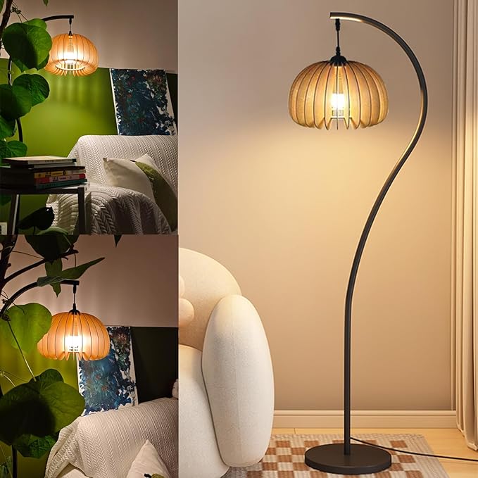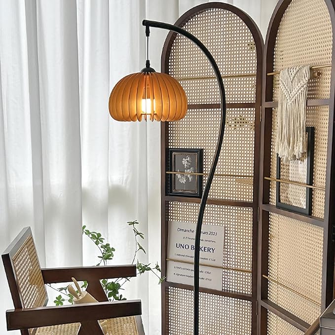 - Wooden Shade Floor Lamp: Featuring a charming wooden shade shaped like a pumpkin, this Rustic Floor Lamp adds a playful and organic touch to your decor, making it a focal point in any room