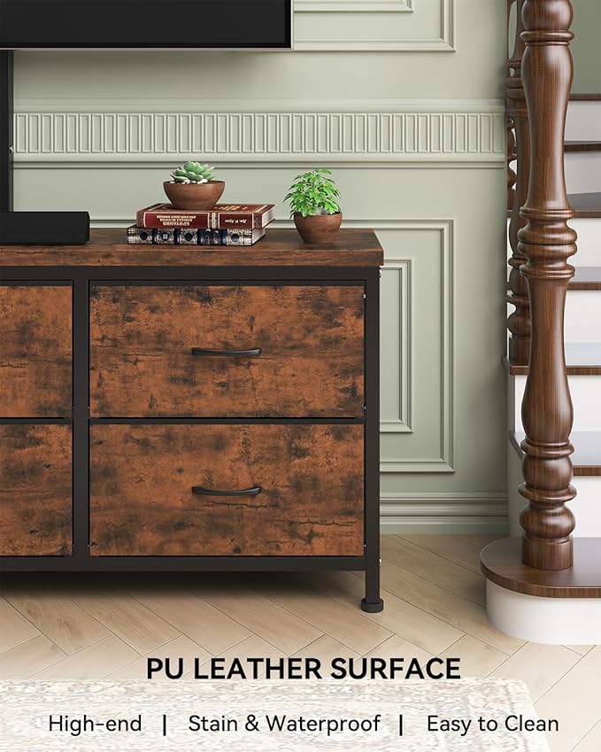 - Ample Storage for a Clutter-Free Space - Say goodbye to messy rooms! This TV stand dresser features 6 spacious fabric drawers and an open wood top shelf, offering plenty of storage for your media devices, gaming consoles, books, and more. Keep everything organized and within reach while maintaining a clean, tidy living area.