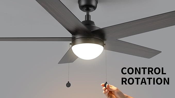 - 【Ceiling Fan with Pull Chain】: Operate this 48" fan using two convenient pull chains—one for toggling the fan’s five speeds and power, and the other for controlling the light. A forward/reverse switch on the motor housing allows easy airflow direction changes, helping maintain a comfortable indoor climate all year round.