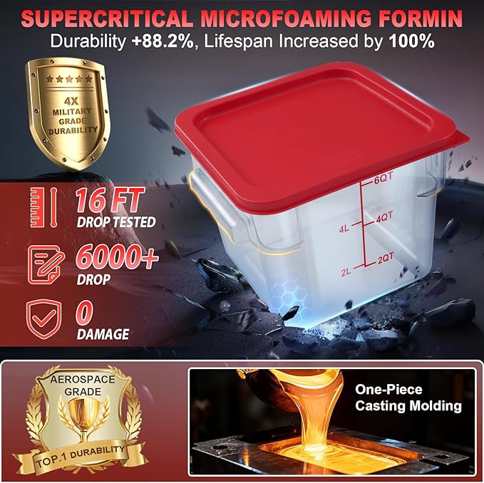 2QT&4QT NSF Food Storage Containers with Lids: 4 PCS [Total Food Grade][Hot&Cold Resistant] Commercial Clear Food Storage Containers for Restaurant Kitchen Proof Dough (Red)
