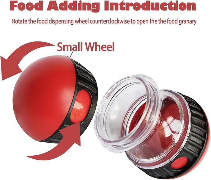 - [Treat Distribution] Our food dispenser has differently sized spheres at both ends. As dogs push the toy, it moves within a fixed area, allowing dogs to continuously chase and play with it. During movement, food is dispensed from the food holes on both sides of the toy.