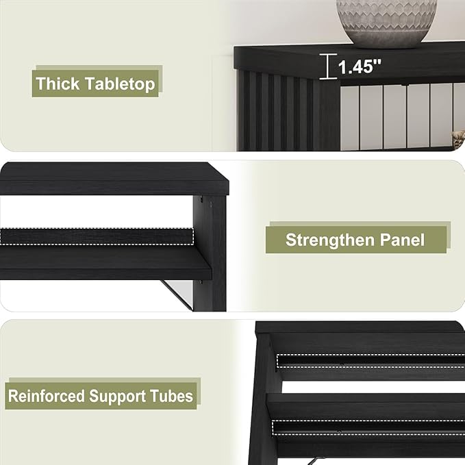 - Fluted Console Style: Designed with elegant slatted side panels, this console table behind couch blends modern charm with versatile appeal. Available in rustic oak, black oak, and greige oak wood grain finishes, it complements farmhouse, industrial, and contemporary home décor.