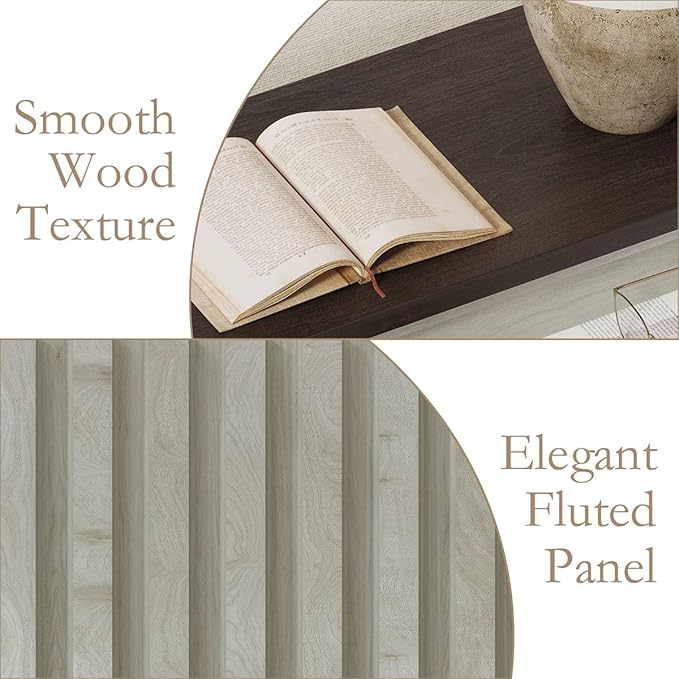 - Elegant Fluted Drawer Design: Enhance your home décor with our sofa table featuring fluted drawer panels that add texture and sophistication. Available in Rustic, Greige, and Walnut & Washed Grey Oak, this console table complements rustic, modern, farmhouse, or industrial living room styles.
