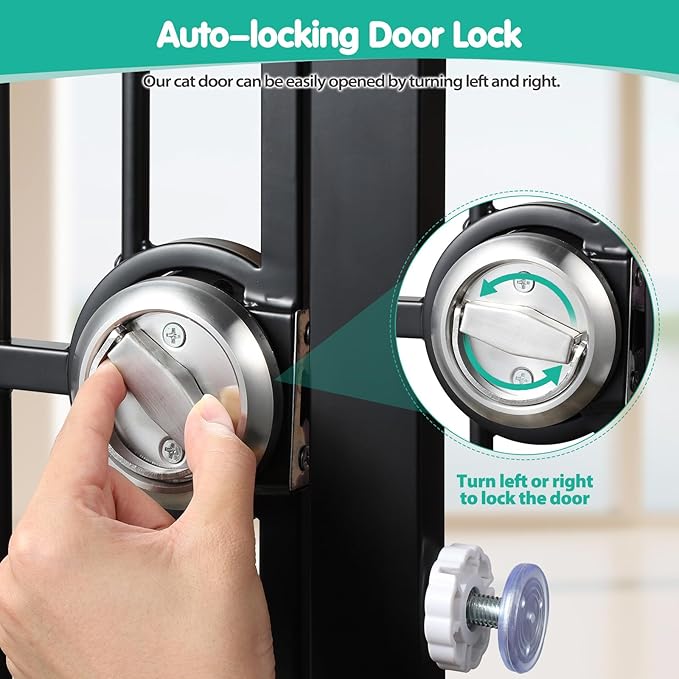 - 【180°Auto-Locking Door Design】Our extra-high pet door has an automatic locking function. When you open the door, it will automatically close no matter what the angle is. The maximum angle the door opens forward is 180°, What's more, our gate features a sliding button lock mechanism, guaranteeing steadfast security.
