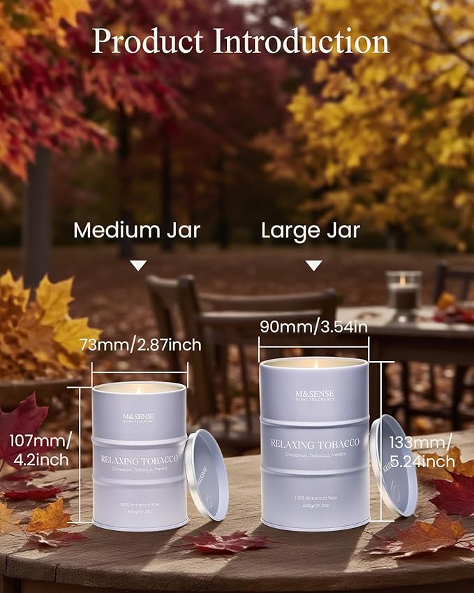 M&SENSE Tobacco Scented Candles Large, Natural Soy Candles 21.2oz 120 Hour Slow Burning,Aromatherapy Candle for Stress Relief Meditation Relaxing