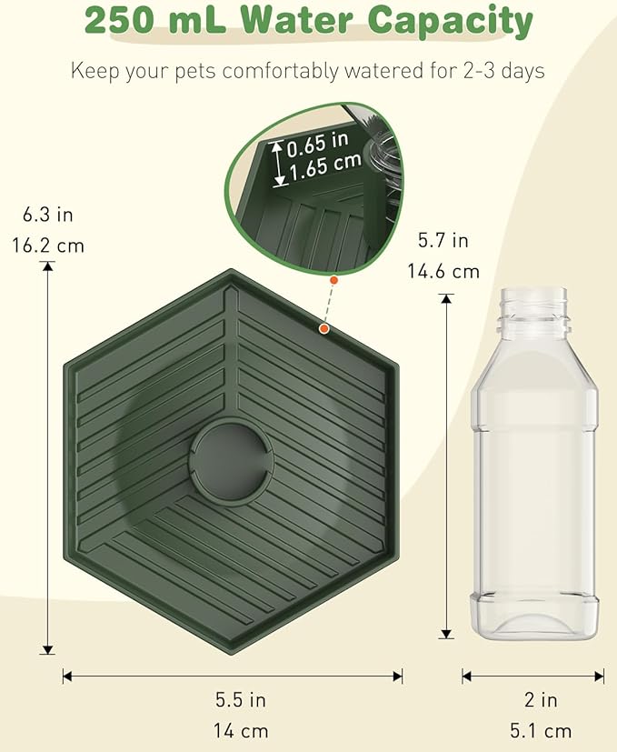 - 250 mL Water Capacity: Measuring 5.7" in height and 2" in width, this compact bottle offers ample water storage to keep your crawlers hydrated and refreshed for 2-3 days! Greatly meet their drinking needs without taking up excess space
