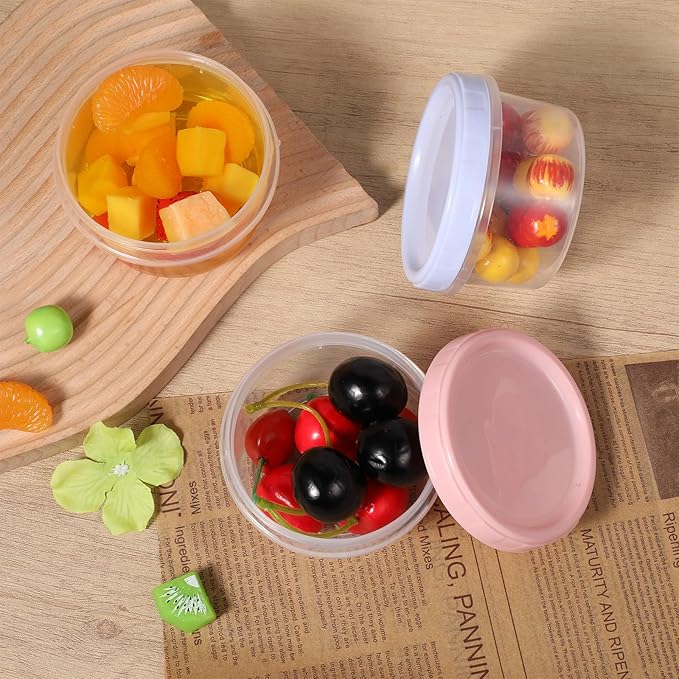 - VERSATILITY: Small food storage containers have flat bottoms and twist tops for stackable use. Not only can it be used in the Refrigerator for freezing, but it is also Microwave safe! TIP: Lids need to be open when placing in the microwave