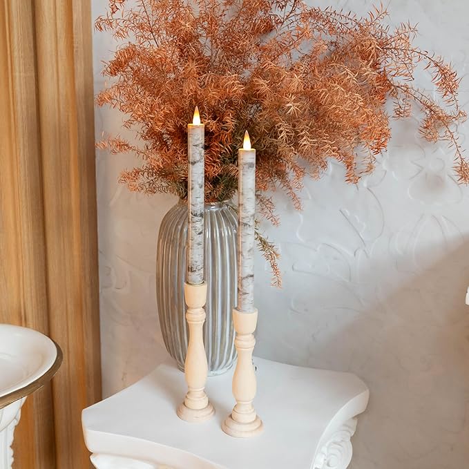 Flameless Taper Candles Flickering with Remote and Timer, 3D Moving Flame Taper Candle Battery Operated to 400 Hours, 9 Inch Window Candles, (Birch Bark)