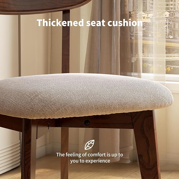- 【Plush Upholstered Comfort】 Designed for all-day relaxation, these walnut kitchen chairs feature thick padded seats wrapped in easy-clean fabric. The contoured backrest supports your spine’s natural curve, while rounded edges and a spacious 16.7” seat depth ensure ergonomic comfort. Ideal for family dinners, game nights, or home offices.