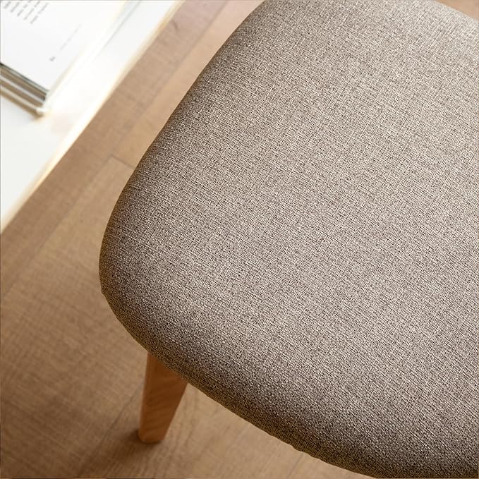 - 【Ergonomic Solid Wood Dining Chair】The curved backrest design conforms to the natural curve of the spine, providing all-day comfort. The classic color combination of smoky chestnut brown and natural wood makes these fabric dining chairs look luxurious and allows them to be used with most furniture in your home.