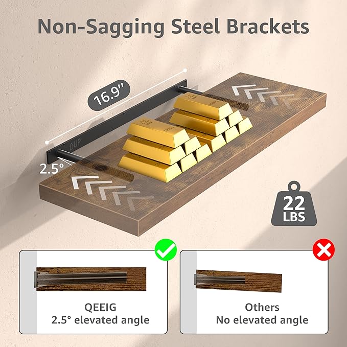 - Sturdy Support: Enhanced steel brackets hold up to 22 lbs, no lean or sag during long-term placement