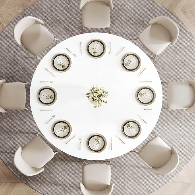 - 【VERSATILE MODERN DECOR】:White round kitchen dining table complements most modern décor with 6-8 chairs, the round dinner table is perfect for kitchens, small space dining rooms, decks, patios, coffee, offices and more. With this stylish modern black round table, it easily seats 6-8 people and is perfect for intimate gatherings.