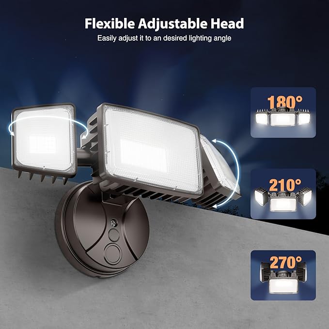 - Efficient Cooling & Long Lifespan: Featuring a die-cast aluminum housing for efficient heat dissipation and extended lifespan, this outdoor security light boasts a professional matte lens. This design provides superior, soft, glare-free illumination and a lifespan of up to 50,000 hours
