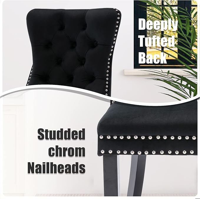 - 【Dining Chair Material】The accent dining chair is upholstered in velvet for comfort and elegance. The frame and legs of the chair are made of rubber wood, which provides enough safety to hold up to 250 lbs. The seat cushion has a bi-elastic structure with high-rebound foam to provide you with a comfortable seating experience. There are small anti-scratch feet on the bottom of each leg to prevent damage to the floor.