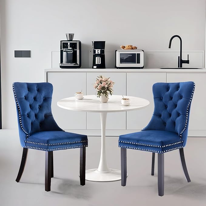 - 【Dining Chair Material】The accent dining chair is upholstered in velvet for comfort and elegance. The frame and legs of the chair are made of rubber wood, which provides enough safety to hold up to 250 lbs. The seat cushion has a bi-elastic structure with high-rebound foam to provide you with a comfortable seating experience. There are small anti-scratch feet on the bottom of each leg to prevent damage to the floor.